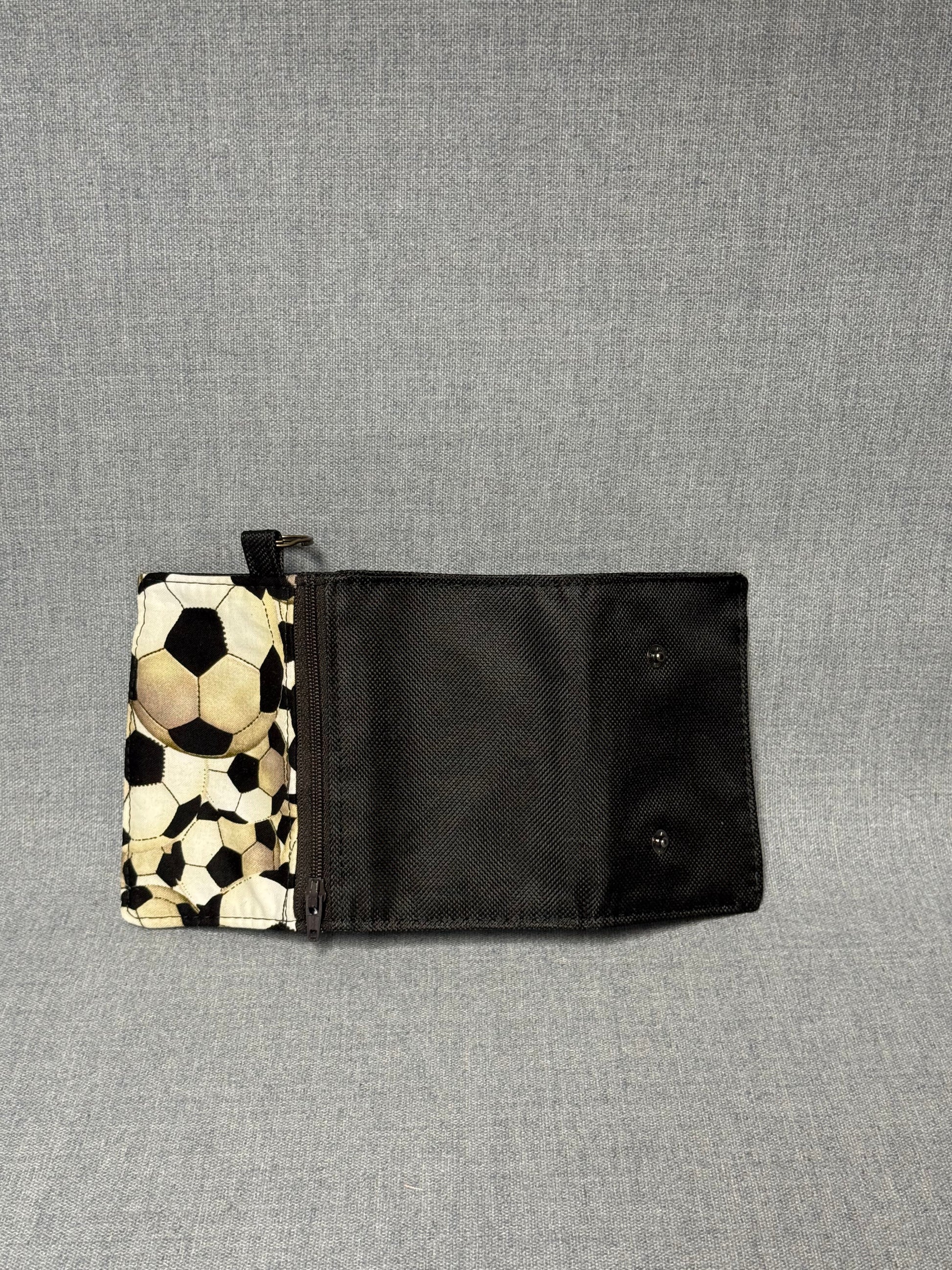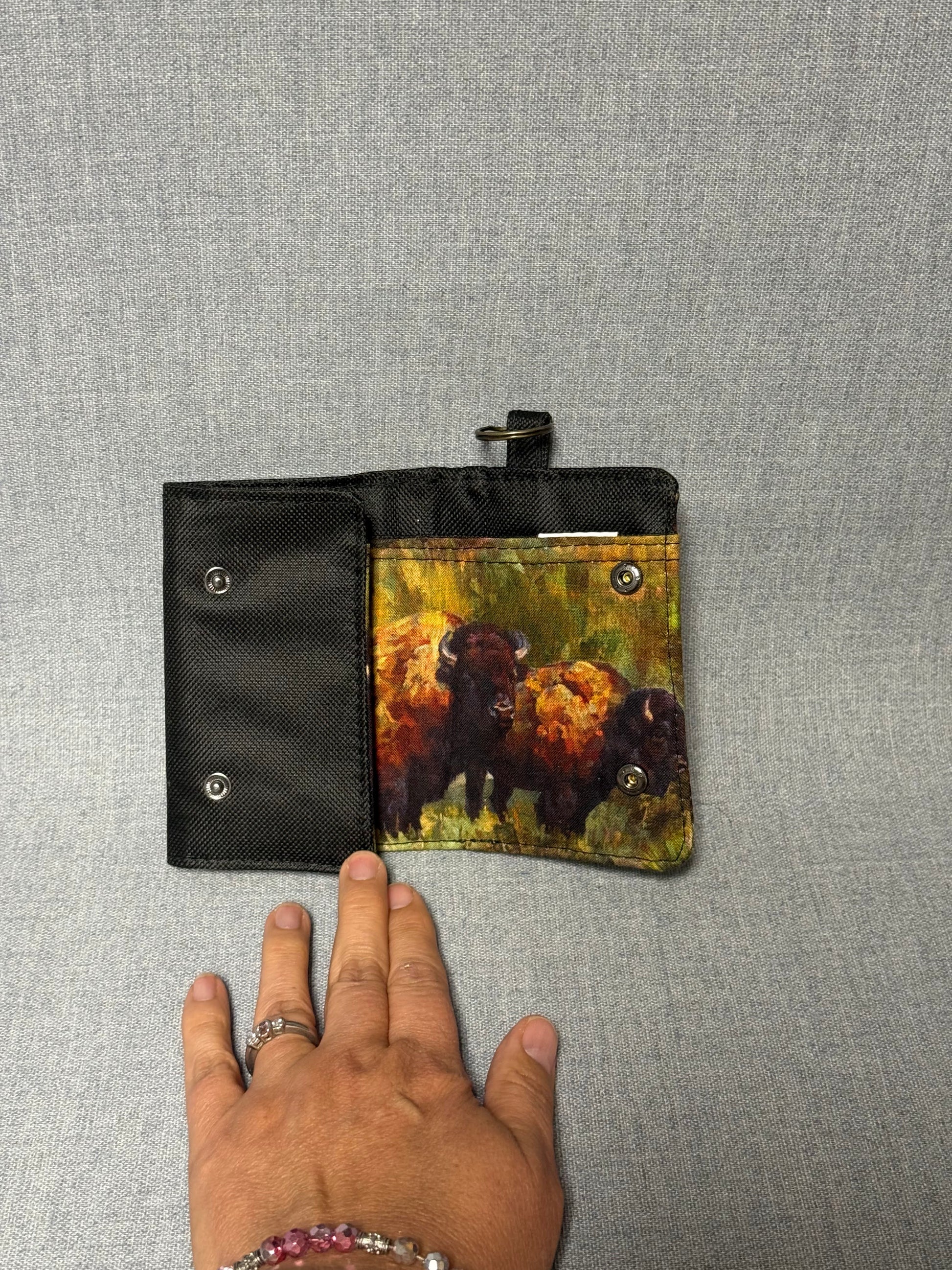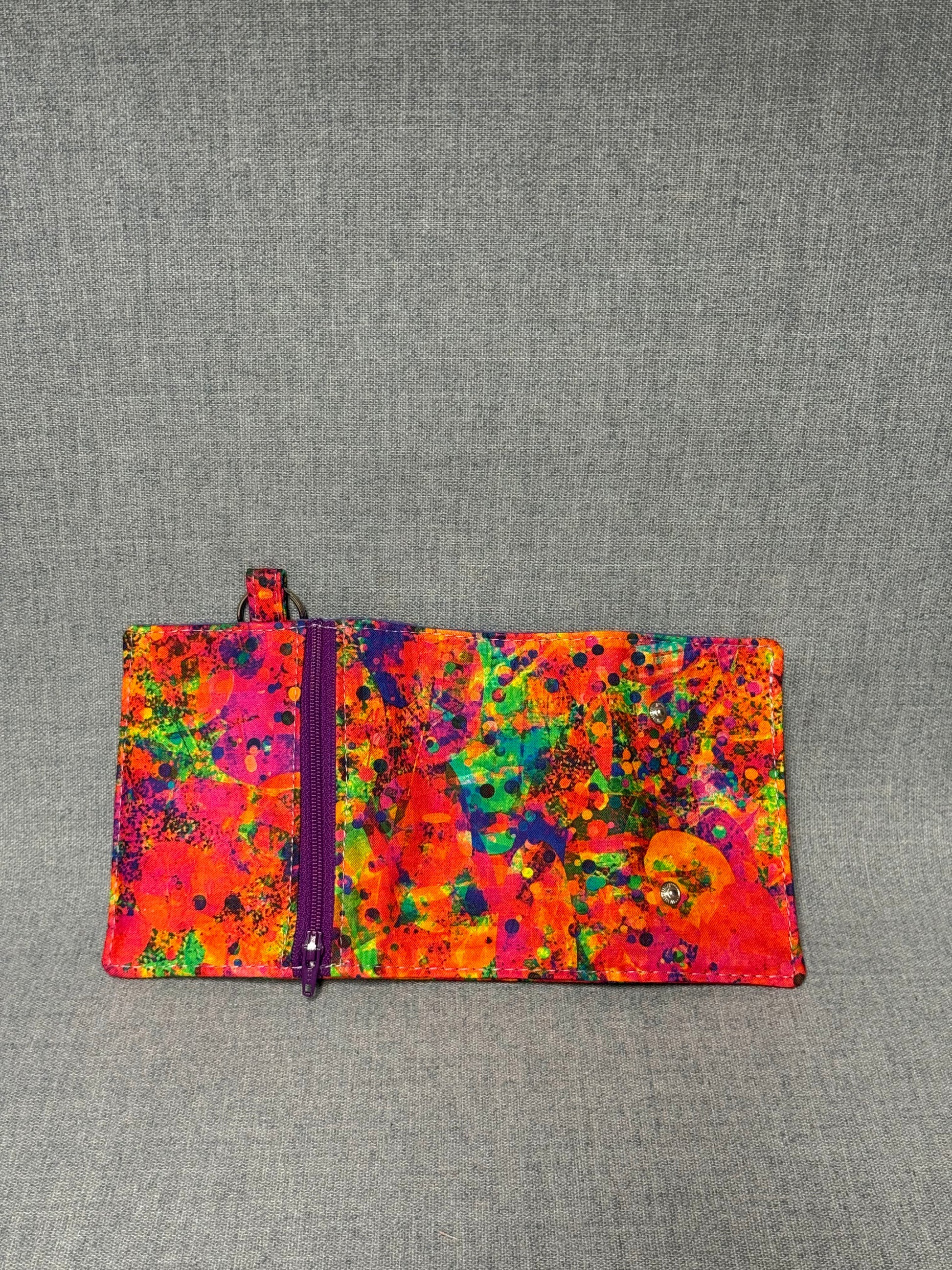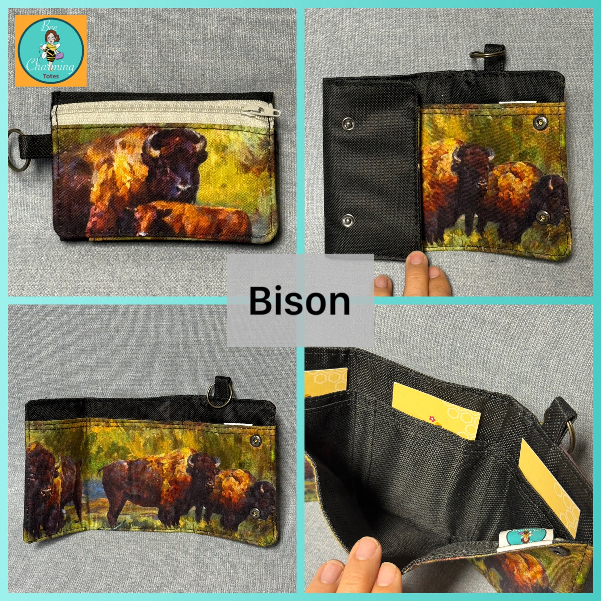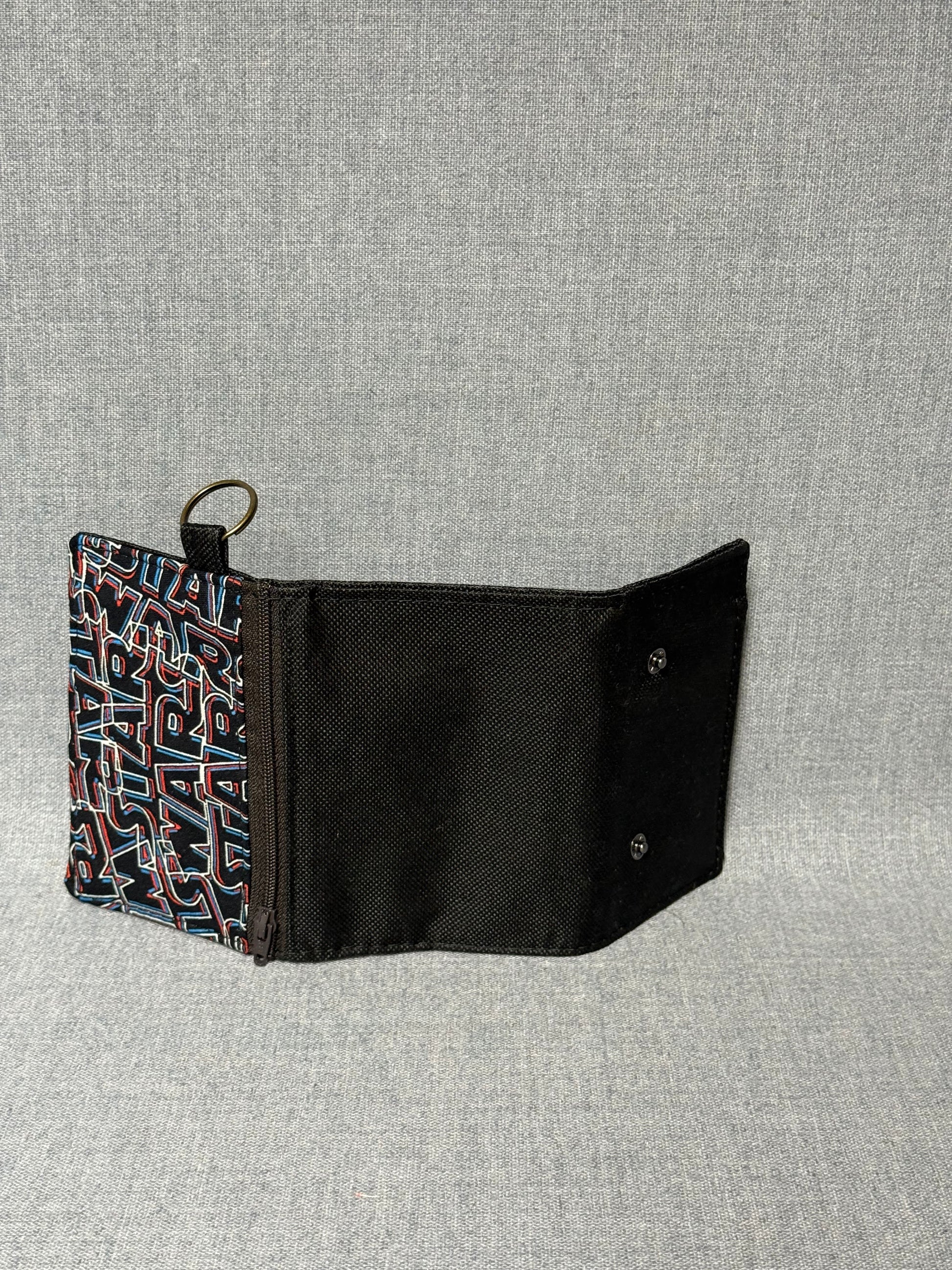 This tri-fold wallet features an outer zip pocket perfect for your change (do we even carry change anymore?) or lip balm. Has credit card slots and cash pocket.