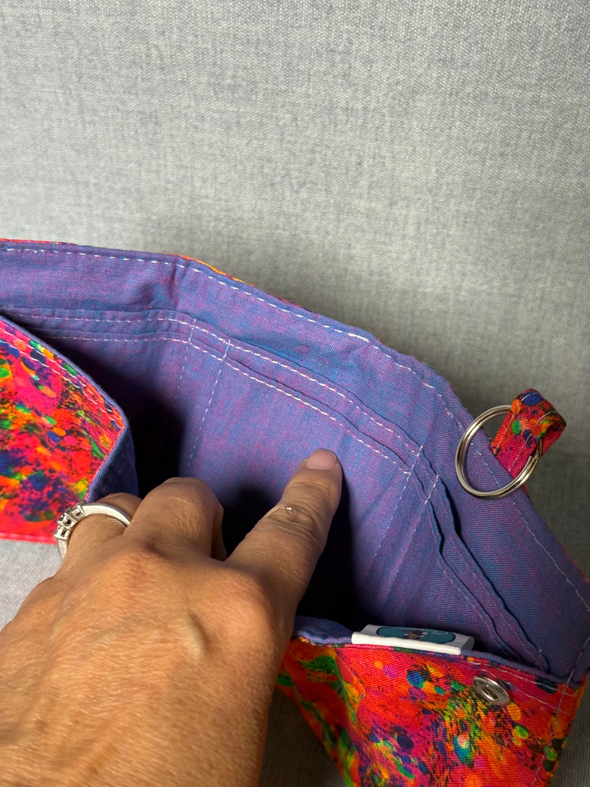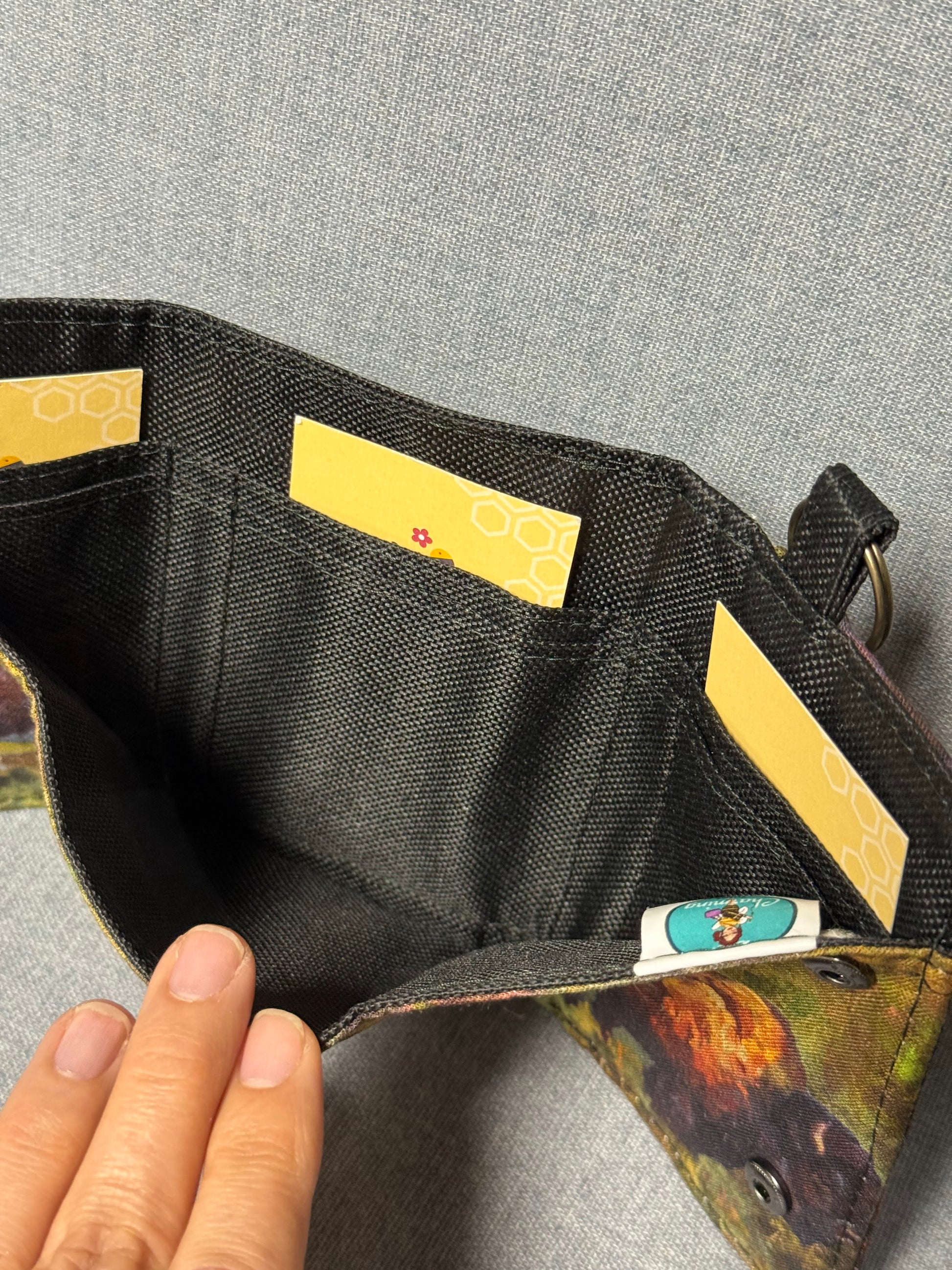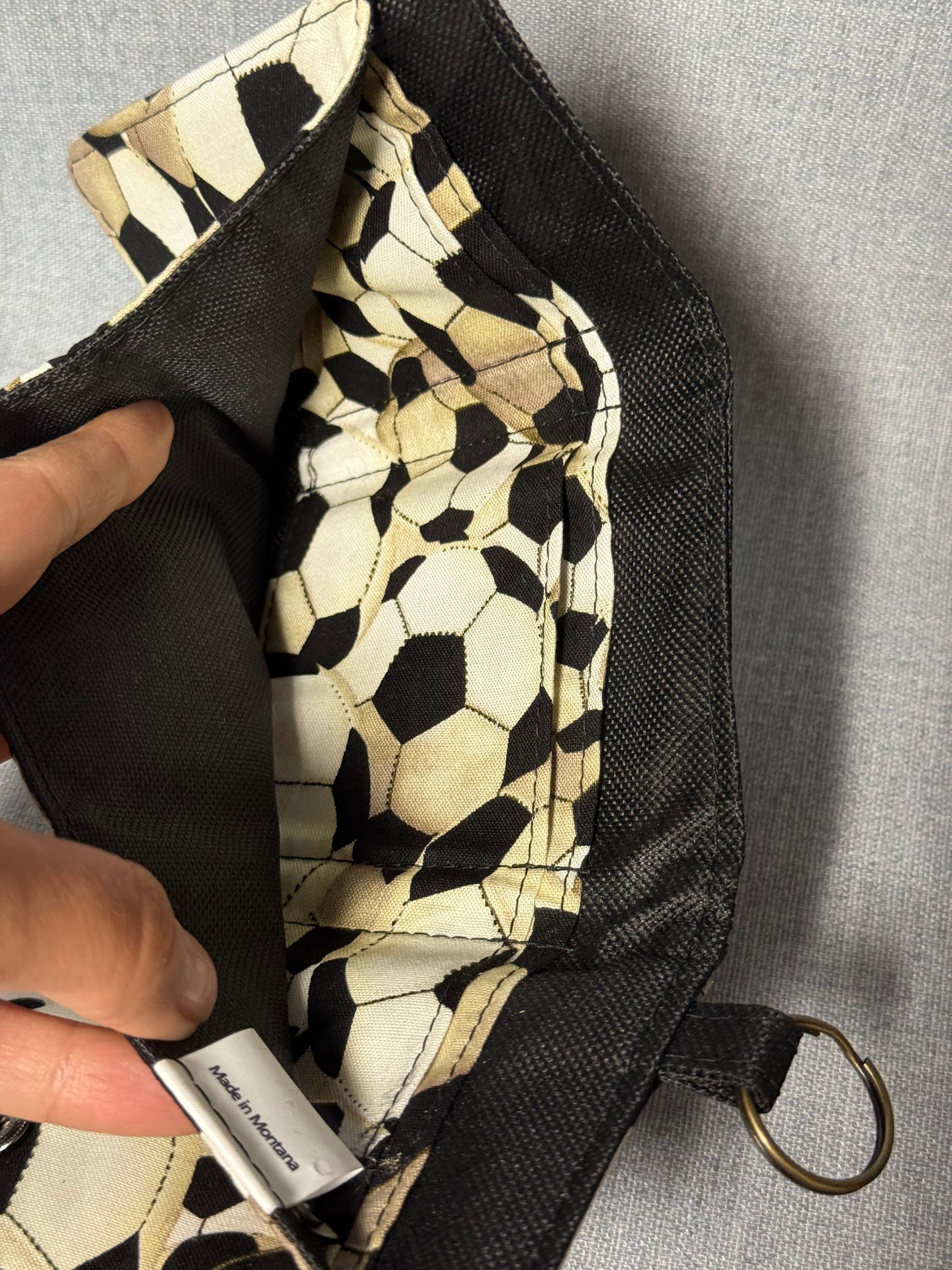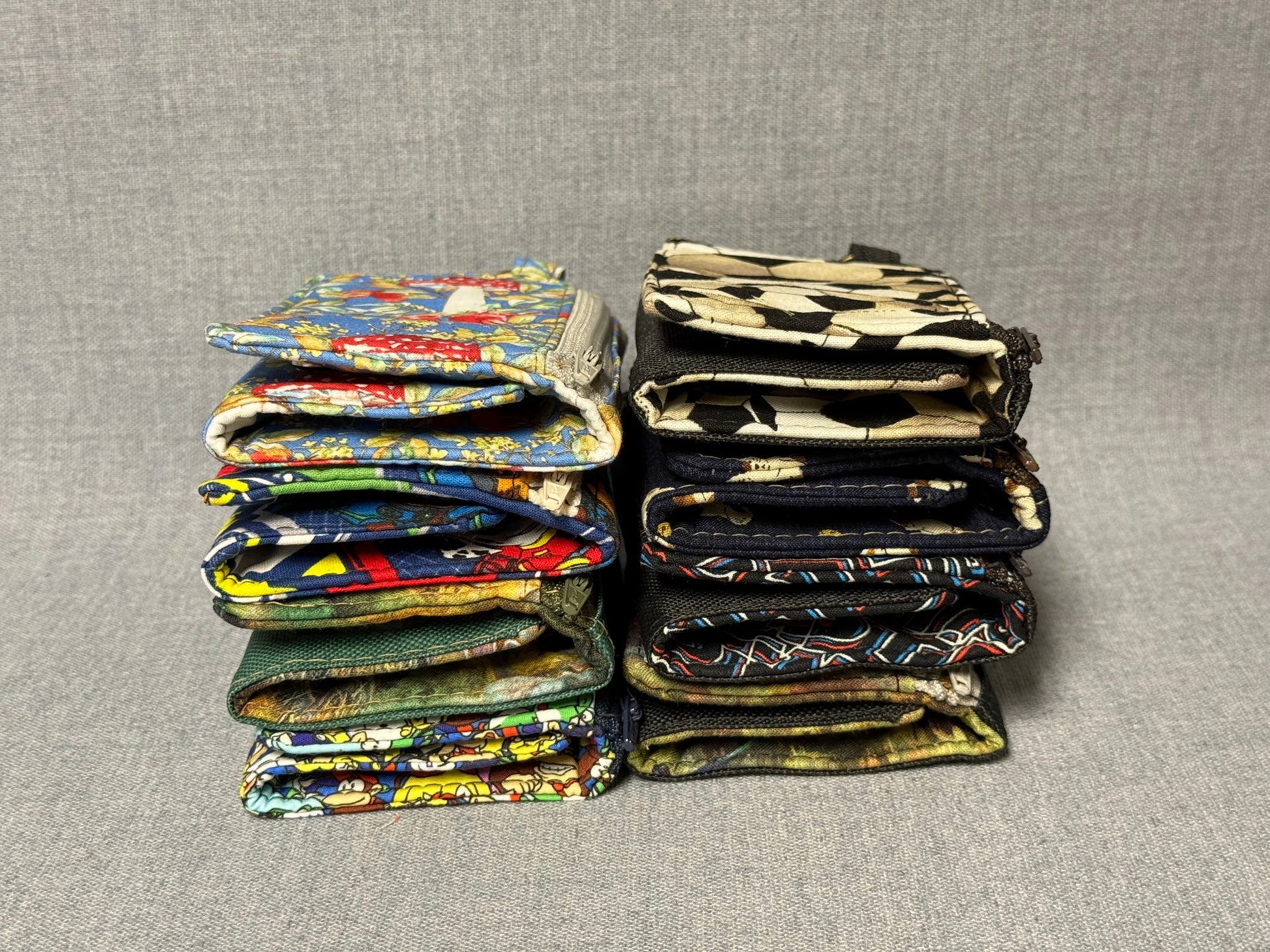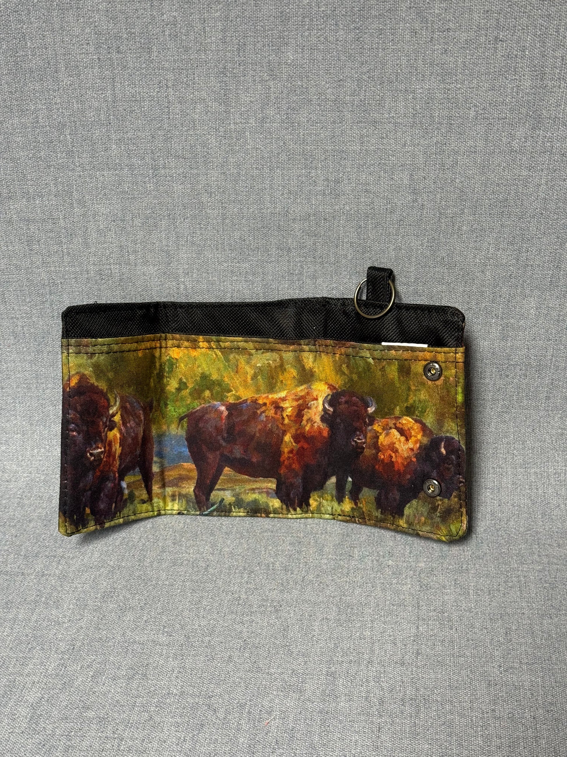 This tri-fold wallet features an outer zip pocket perfect for your change (do we even carry change anymore?) or lip balm. Has credit card slots and cash pocket.